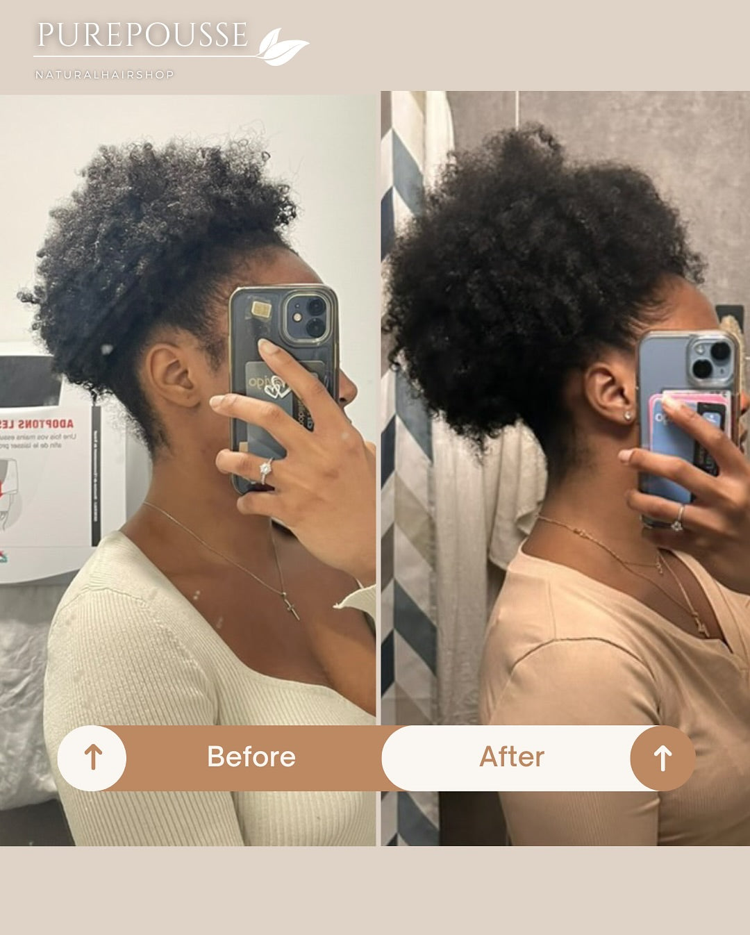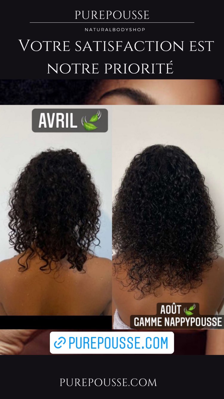 Notre soin 100% naturel, formulé spécialement pour les besoins des cheveux crépus et bouclés, nourrit en profondeur, stoppe la casse et relance la pousse dès les premières semaines