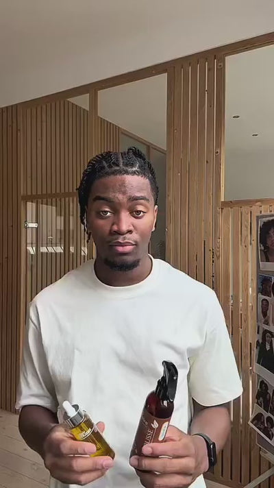 L'Élixir Pousse est un concentré puissant d'huiles végétales, d'huile essentielle et de plantes 🌱, spécialement formulé pour stimuler la pousse des cheveux afro et renforcer leur santé.